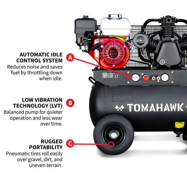 20 Gallon Portable Air Compressor 6.5HP Honda GX200 Engine Horizontal Tank 13.5 CFM @ 90 PSI Gas-Powered