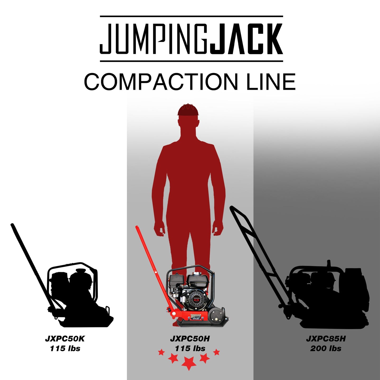 Powered by a 5.5HP Honda Engine, the JXPC50H plate compactor is perfect for patios, sidewalks, and more. Designed with a 17 in. x 13 in. plate, this vibratory plate is built to maneuver narrow, cramped spaces. Operating at 5,900 Blows per Minute (BPM), the JXPC50H compacts cohesive and granular soils up to 8 in. Ideal for compacting landscapes, hardscapes, roadways, and asphalt, this vibratory plate is perfect for small construction crews and do-it-yourselfers alike.