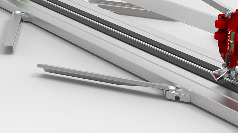 This tile cutters option from Battipav gives you a super-professional setup for straight and diagonal cuts on single- and double-fired ceramic and porcelain tiles. The carriage runs on nine ball bearings, with four adjustable bearings for precise, smooth movement. A diagonal fence comes included for accurate angle cuts.