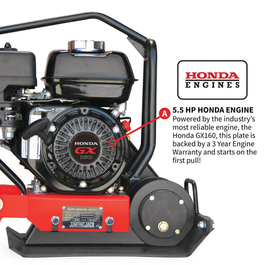 ALL MUSCLE. PURE PERFORMANCE. 5.5HP HONDA GX160 ENGINE Durable and tough, this plate compactor is built to last, making it perfect for professionals, construction equipment rental, and do-it-yourselfers alike. COMPACTION FORCE OF 3,000 LBS/FT Achieve 100%...Sale price From $1,709.99Regular price $1,899.99Sale price From $1,709.99Regular price $1,899.99 -