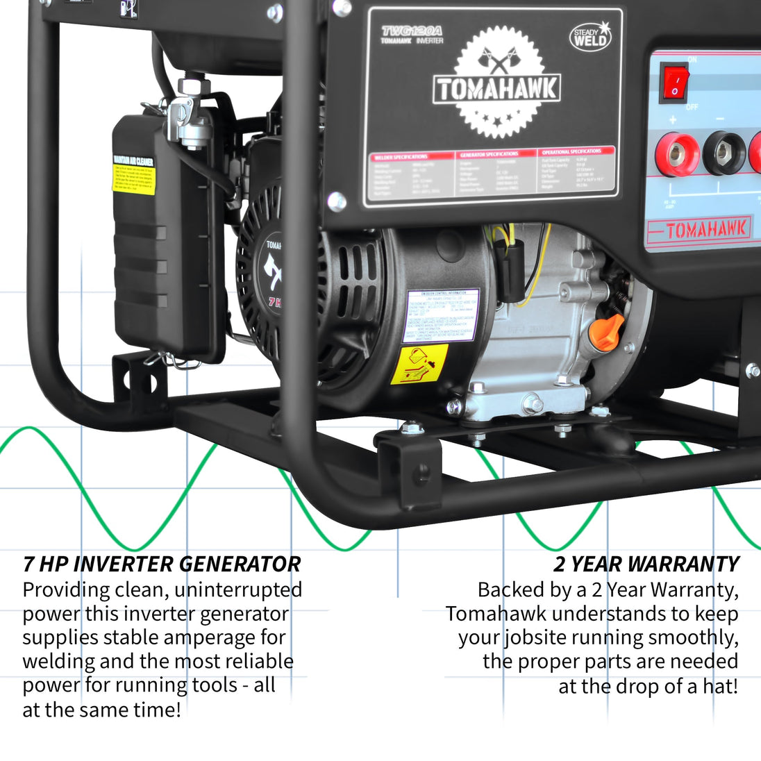 • Inverter Generator with stable sine wave for the steadiest welding