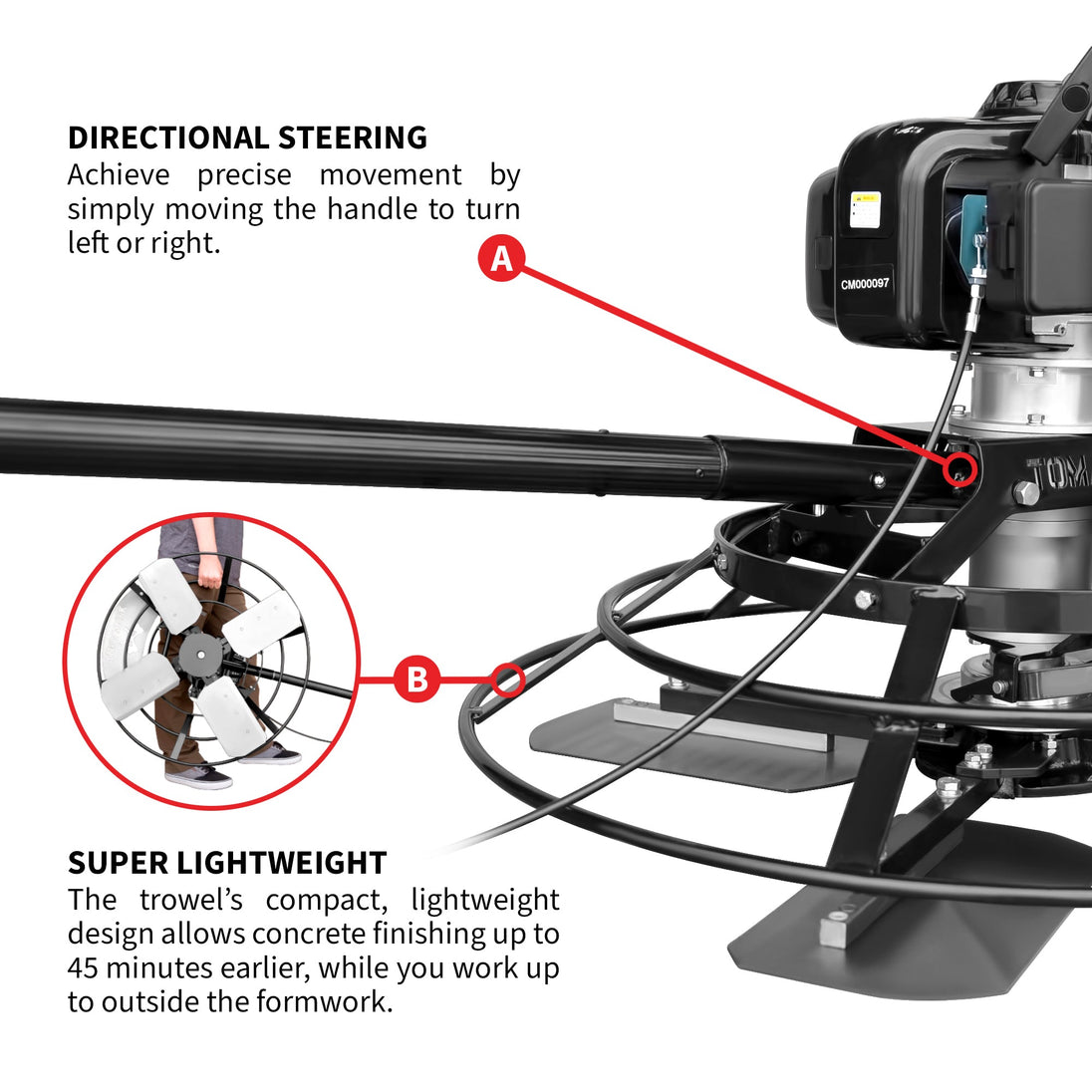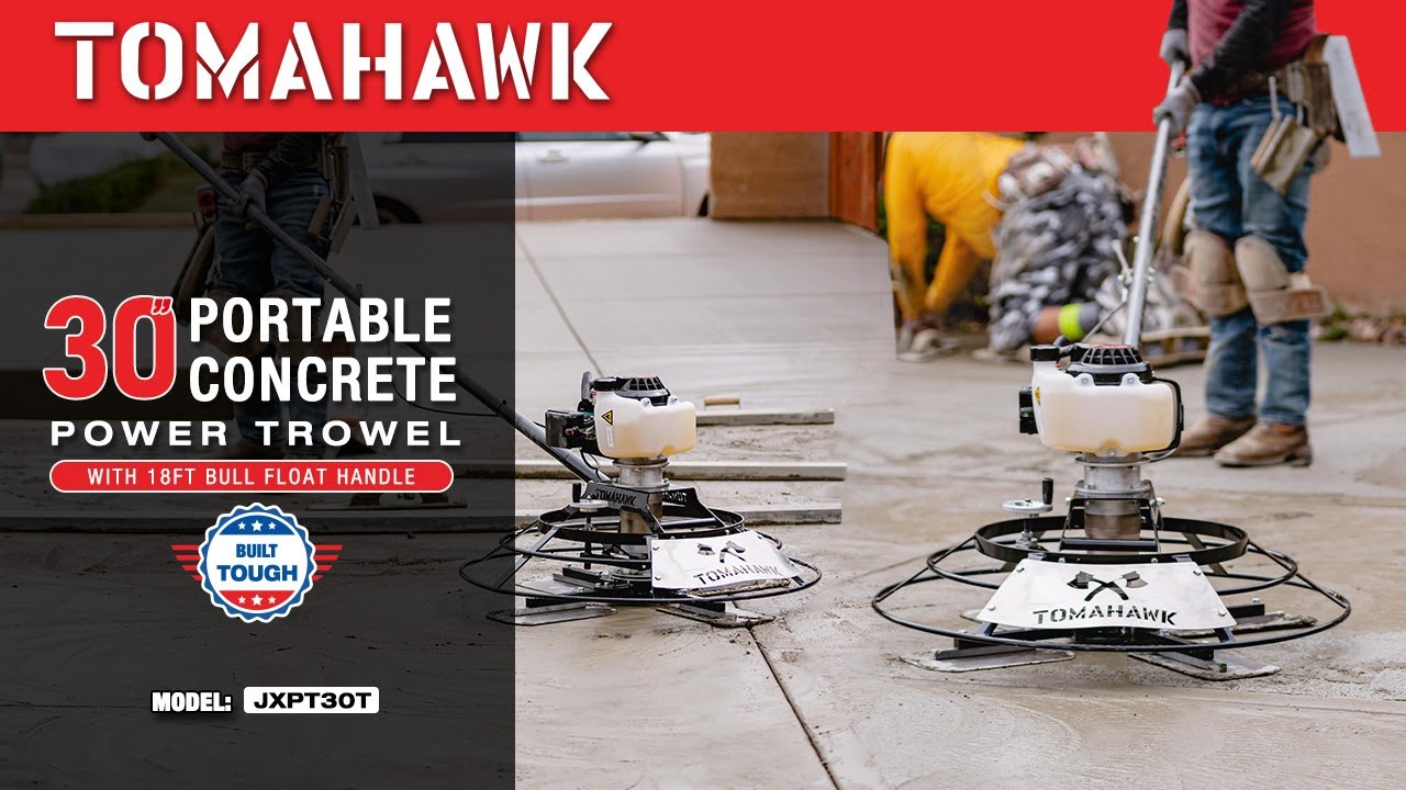 30" Portable Concrete Power Trowel with 18ft Bull Float Handle 37cc Engine
